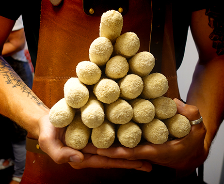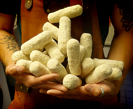 Al het avontuur van hun reizen zit in hun heerlijke snacks verpakt. Rien is de creatief. Hij bedenkt de mooiste smaakcombinaties. Samen met hun zoon Robby draaien en kneden ze zijn ideeën tot KrokettenKunst; rendang, Spanish fly, woest varken, asperges met zalm, bospaddenstoeltjes, parmezaan met truffel, Italiaanse bergkaas en nog veel meer mooie smaken.